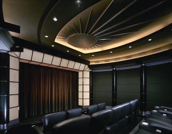 在家庭影院專業性要求上,客廳家庭影院設計可能并不會刻意追求,而是將家居裝潢與影院設計都融入到客廳里來,使客廳家庭影院不喪失原本客廳的功能。在獨立視聽室設計上,要求具備專業性與私隱性,并要求達到聲場要求,因此,獨立的視聽室設計往往會進行房間的聲學改造,同時,獨立的視聽空間對于光學也會做需要的處理,以達到聲畫表現。
